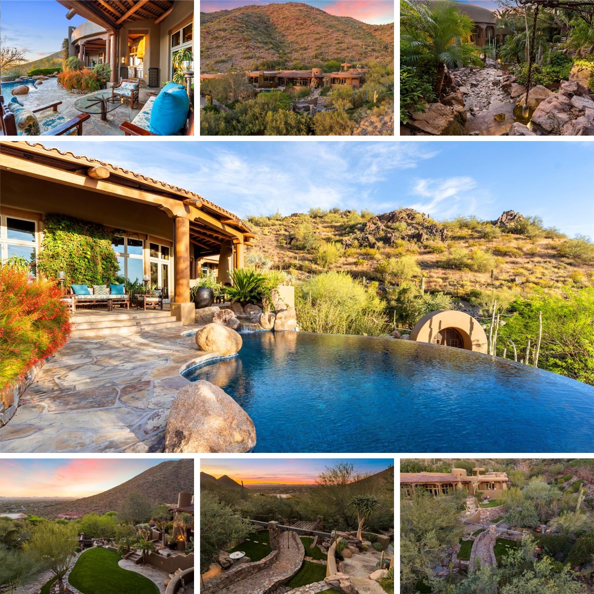 The most private property in the ultra private and aptly named Lost Canyon. This Majestic Mountain Retreat has extensive mountain and city light views, sited on it's own 14 acre private park. Surrounding the property is the McDowell Sonoran Preserve which encompasses some 30,500 acres and is the largest city nature reserve in the United States with 180 miles of accessible trails. Situated within the McDowell Mountains, in a setting that feels totally removed from the cacophony of the world, yet truly just minutes away from the best restaurants, shops and activities Scottsdale offers. Walking along the estate's pathways, you can follow the meandering stream through the property from the secluded reading house at the upper end of the property to the romantic grotto with it's impressive stonework and grassy play areas equipped with swings and a golf chipping area. The rustic culinary escape bbq and dining area invites an all family cookout.