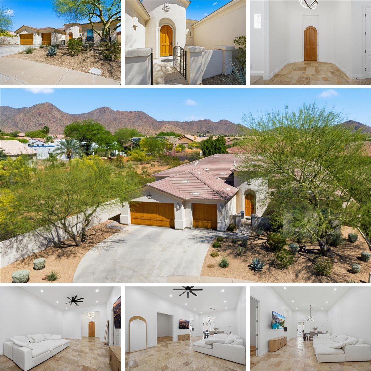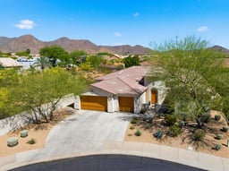 Welcome to Viento del Este—an exclusive gated enclave of just 20 residences, built in 2019 and designed for privacy, elegance, and timeless appeal. A charming front courtyard sets the stage, leading to a grand circular foyer anchored by a solid wood Craftsman entry door with Emtek hardware—an immediate reflection of the quality craftsmanship found throughout. The residence offers 4 bedrooms plus a den and 3.5 bathrooms, providing comfort and convenience for family and guests alike. The spacious primary suite is a true retreat, highlighted by a spa-inspired bath with a luxurious six-head rain shower. En suite guest quarters ensure privacy and comfort for visitors. Inside, soaring 12-foot ceilings and expansive windows fill the home with natural light, creating a bright, open living environment. Thoughtfully designed for both everyday living and entertaining, the floorplan features a formal dining room, 8-foot interior doors, and a dedicated office. At the heart of the home, the gourmet kitchen impresses with beach granite countertops, an oversized center island, stainless steel appliances, a Café™ 36-inch knob-control electric cooktop, double ovens, and a generous walk-in pantry offering exceptional storage and functionality.Step outside to a covered patio designed for seamless indoor-outdoor living—perfect for enjoying Arizona’s year-round sunshine. Ideally situated near top-rated schools, Palomino Public Library, and the scenic Lost Dog Trail within the McDowell Sonoran Preserve, this home delivers an exceptional lifestyle with convenient access to nature, recreation, and everyday amenities.