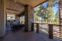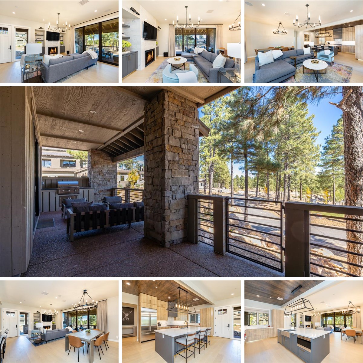2993 S. Tourmaline Dr Unit #33, Flagstaff, AZ 86005. Welcome to summer! The grass is GREEN and the temps are perfect high 60's and blue skies! Guard gated beautiful Pine Canyon, Mountain Vista delivers a turnkey lightly lived in mountain modern. Two bedrooms including the generous primary with open space, grass and trees separate with an abundance of natural light. The secondary bedroom ensuite and guest casita provides ample space for guests or family. The residence features rock natural gas fireplace, quartz counters, luxurious cabinets and a luxury feel throughout. The two-car garage is attached for all single level living. The covered patio is perched up high for privacy with stainless steel gas BBQ and granite tops, a dog gate for your pets and walking distance to the Clubhouse!