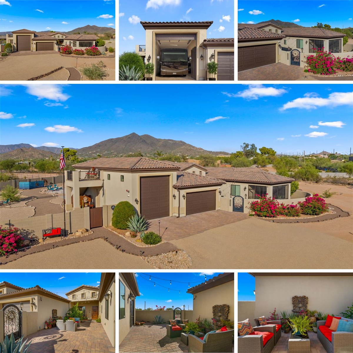 Commanding mountain vistas, exceptional craftsmanship & serene privacy...this extraordinary estate must be experienced in person to appreciate fully! Positioned on 2.5 acres of usable land, with/ no dirt roads and horses allowed. Miles of hiking & biking plus plenty of golf nearby. This like-new custom residence offers the rare combination of elegance, functionality, & resort-style living. A snowbird's dream! Showcasing a heated 48' lap pool, a stunning oversized 3-car garage w/ 48' RV bay and a 14' door, all climate controlled plus built-in cabinetry, epoxy flooring, 30/50-amp service, and dump station. A private casita offers an inviting retreat with its own living room, kitchenette, & separate entrance, making it ideal for hosting guests or accommodating multi-generational living. State-of-the-art upgrades include a premium security system with night vision, a new putting and chipping green, upgraded turf surrounding the pool, integrated surround sound, and more. Every detail has been thoughtfully curated to elevate both comfort and lifestyle. Fall in love with Cave Creek's Western town and heritage. Live where others vacation!