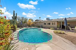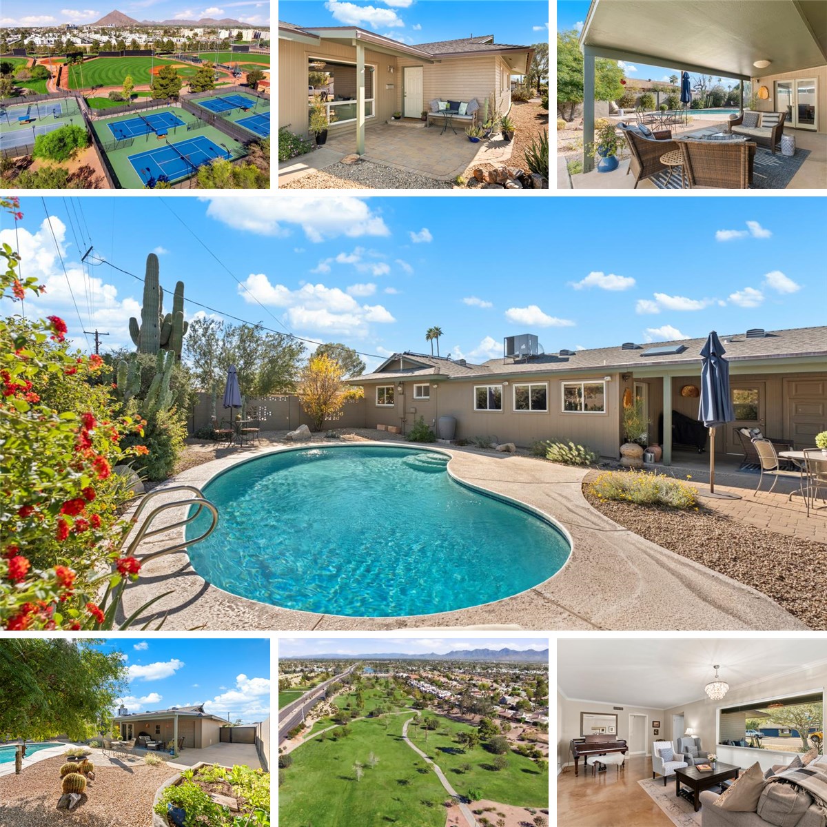 Ideally set minutes from Chaparral Park, the Greenbelt, and Old Town, this updated 4-bed mid-century home offers quality and upside. Major investments include Energy Star HVAC, solar hot water, premium roof, and dual-pane windows, plus updated sewer and in-slab plumbing for total buyer confidence. The interior features polished concrete floors, custom bookshelves, and a granite kitchen with a custom skylight. Camelback views frame the front sitting room, while the oversized corner lot serves as a private retreat with a pool and lush landscaping. A rare plus is the ''snowbird garage''--a flexible space perfect for a MIL suite, gameroom, workshop, or casita. With a lockable RV gate and secure rear-entry, this is the ultimate Scottsdale find.