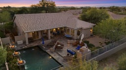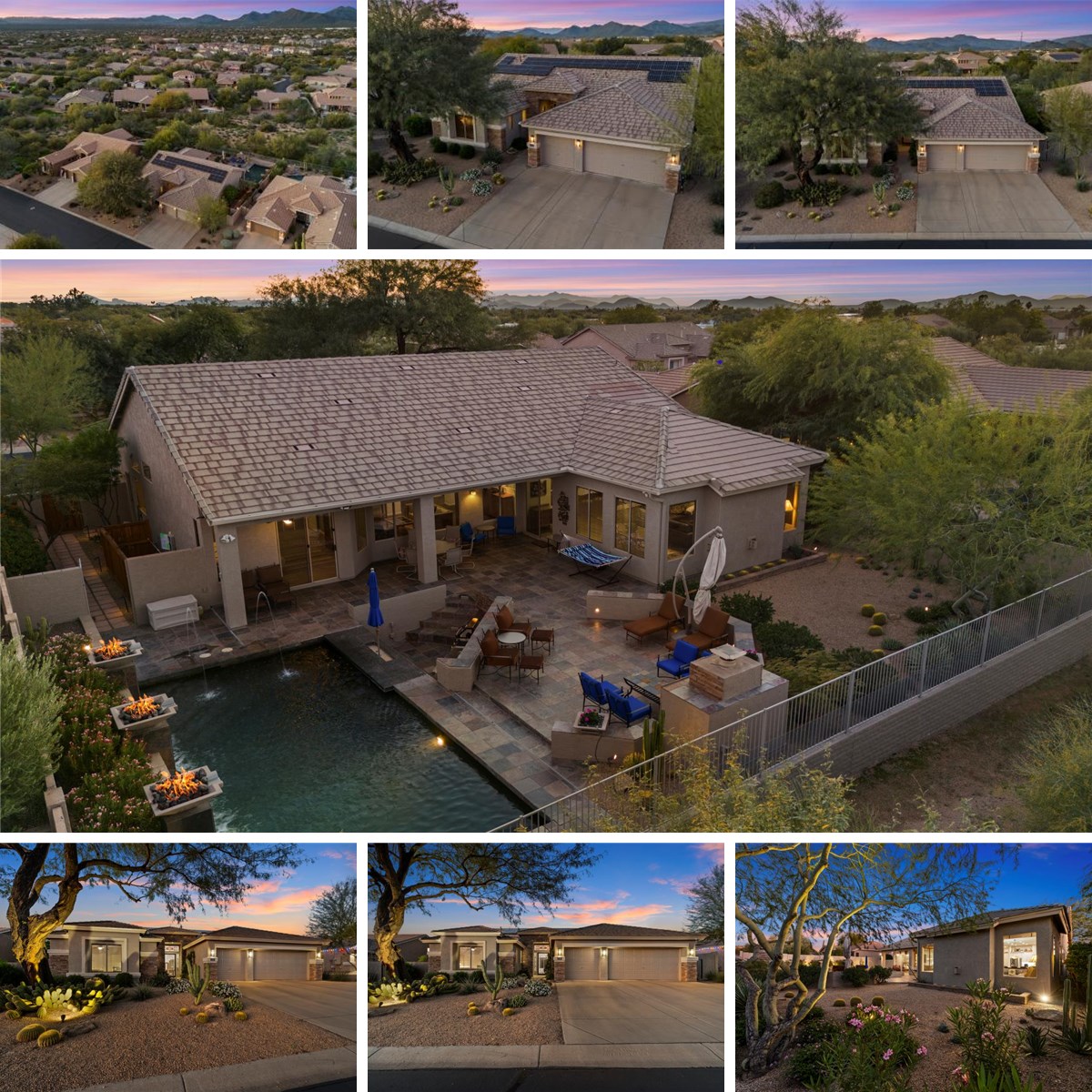 Step outside to a true resort-style backyard, designed for exceptional entertaining. Enjoy a heated pool with swim-up bar and foot therapy jets, dramatic water and fire features, an outdoor fireplace, and a built-in BBQ area—all set against the serene backdrop of the desert landscape. An extended 3-car garage accommodates larger vehicles with ease.