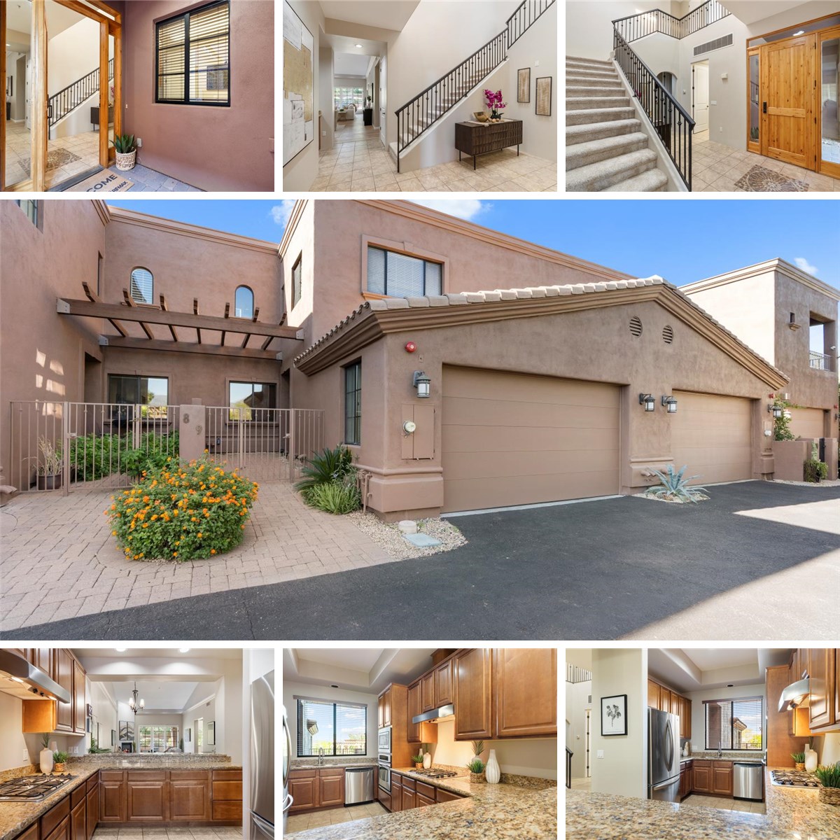 Welcome to 7200 E Ridgeview Place unit 9- Immaculate and move-in ready, this sun-filled Carefree retreat blends elegance and comfort. The open great room with vaulted ceilings and gas fireplace invites relaxed living, while the kitchen shines with granite counters and stainless appliances. The main-level primary suite offers a spa-like bath with tub, large tiled shower, dual vanities, and a private patio escape. Two bedrooms pstairs with a Jack-and-Jill style suites and a sun terrace that captures stunning mountain views. Enjoy resort-style living with a community pool and spa, all just a short stroll to Carefree's charming shops and restaurants.