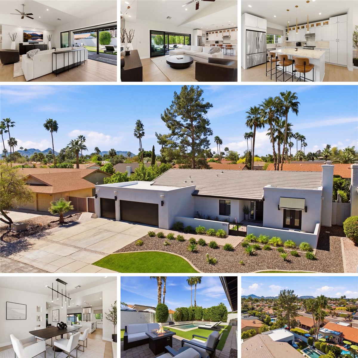 Luxury living in McCormick Ranch, this thoughtfully remodeled single-level home blends elevated architecture with effortless indoor-outdoor living. Vaulted ceilings and expansive windows fill the home with natural light, complemented by high-end finishes and real wood flooring throughout. The kitchen, dining, and great room flow seamlessly together in an open-concept layout, highlighted by dramatic 15-foot retractable glass doors that create a true indoor-outdoor experience. The backyard is designed for entertaining, featuring a heated pool, built-in BBQ, updated landscaping, and enhanced lighting in both the front and rear of the property. Extensive improvements include a 5-ton HVAC system with full replacement of condenser and air handler, updated ductwork for improved efficiency, a new water heater in 2024, termite treatment with transferable warranty through 2028, main water line replacement from meter to main in 2022, added ground-level sewer cleanouts, whole-home surge protection, and a recoated flat roof in 2025 along with a tile roof replaced in 2014. The remodel also includes an expanded footprint, raised roofline, widened hallways, large-format windows, and updated doors throughout, creating a brighter and more functional layout. The open kitchen features a large island, modern finishes, gas range, and flows directly into the main living spaces with updated lighting and fixtures, and the home is offered fully furnished for a true move-in ready opportunity. The rare 3-car garage is equally well-appointed with epoxy-coated floors, new garage doors, LED motion lighting, a built-in vacuum system, and a power washer. Altogether, this home offers a refined, low-maintenance lifestyle in one of Scottsdaleās most established and desirable communities.