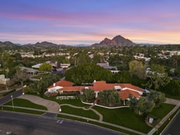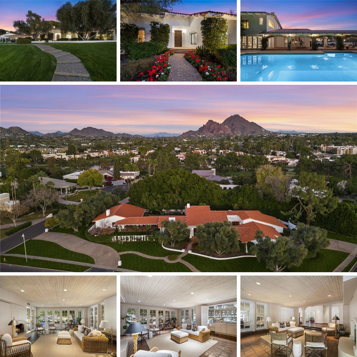 Perched on a commanding 1.1-acre elevated lot in Arizona's coveted Biltmore Estates, this exceptional Santa Barbara style estate offers an unparalleled blend of privacy, architectural refinement, and resort-style living. Surrounded by mountain vistas and just moments from the iconic Biltmore Hotel, the property is immersed in one of the most exclusive neighborhoods in the United States sitting directly across from two world-class golf courses and is adjacent to scenic walking, running, and cycling paths. Sprawling over 7,000 square feet this home offers 6 bedrooms and 5.5 baths with multiple flex rooms. The main residence is thoughtfully composed to balance grand entertaining with everyday comfort. Dramatic 25-foot cathedral ceilings and expansive picture windows flood the interiors with natural light, creating a seamless connection to the surrounding landscape. Public living spaces are elegantly positioned in the north wing and include a formal living room, dining room, garden room, and chef's kitchen-each designed with generous proportions and timeless appeal. The private south wing serves as a tranquil retreat, anchored by a luxurious primary suite featuring a full bath, spa-style shower, private dressing lounge, and bar. Three additional spacious bedrooms-one ensuite and two sharing a beautifully appointed bath which offer comfort and privacy. A versatile recreation room with direct patio access completes this wing, ideal for leisure or wellness pursuits. Upstairs, a loft-style bonus room opens to a balcony overlooking the pool, mature ficus trees, and distant mountain peaks—an inspiring space for work, relaxation, or creative pursuits. Equally impressive, the guest house is a private sanctuary of its own. It features a welcoming living room with fireplace, a well-appointed kitchen and breakfast area, and sun-filled picture windows framing mature olive and citrus trees. Two generously sized bedrooms provide serene accommodations, each with a full bath—one offering picturesque views of the loggia, pool, and lush grounds. Designed for effortless indoor-outdoor living, this remarkable estate is equally suited for refined gatherings or casual enjoyment, with fluid spaces that invite connection, relaxation, and celebration in one of the nation's most prestigious enclaves.