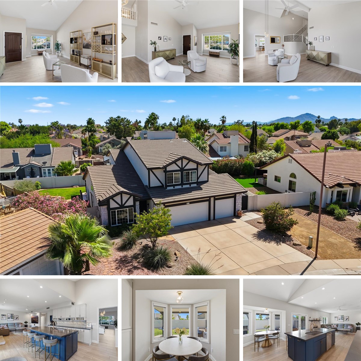 Outside, the refinished saltwater pool anchors a backyard designed for Arizona living, with a covered patio and manicured grass area on a 7,807-square-foot lot. The 3-car garage includes an EV charger.
